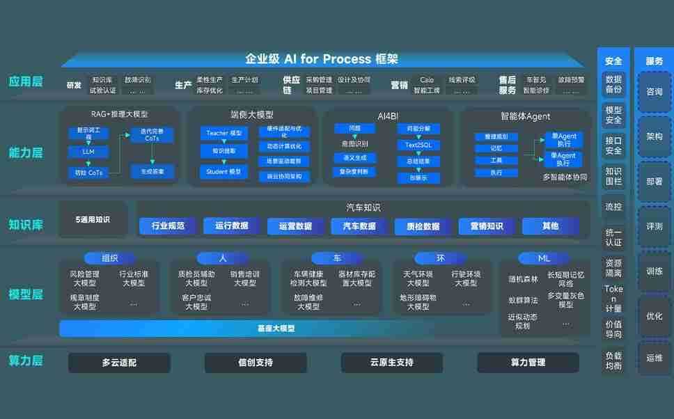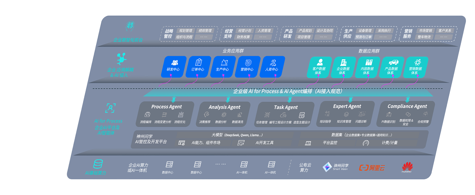 AG尊龙凯时问学智车解决方案是一套基于AI技术的汽车行业智能化系统,,,覆盖从底层算力到顶层AI应用的全栈方案。。。。方案由算力层、、、、模型层和应用层组成:算力层,,方案支持多种一体机配置,,,具备云端灵活部署、、、、多云适配以及动态优化计算资源的能力;模型层,,,AG尊龙凯时问学平台版提供了企业级AI应用一站式构建与管理平台,,,,支持基于后训练强化技术的汽车企业专属模型的训练、、、、评测和运营;应用层,,,AG尊龙凯时问学DeepSeek版提供包括超级员工、、、智能招采、、、智能营销、、智能客服、、、、AI for BI等一系列解决方案,,,可助力汽车行业实现数字化转型,,,,让管理更智能、、、、响应更敏捷。。